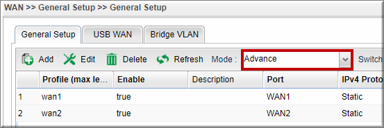 4. Kích hoạt mode “Advance” cho phép tạo nhiều Sub-interface trên WAN