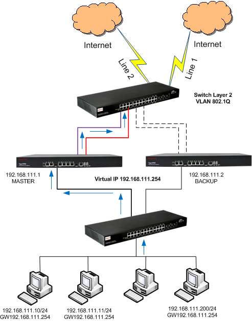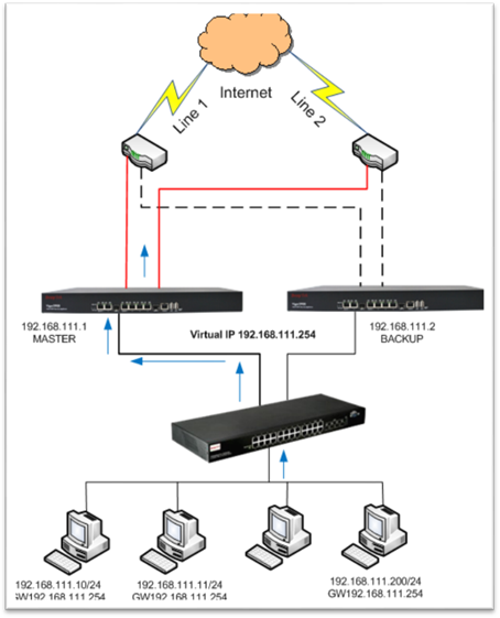 Khi ở trạng thái standby, thiết bị Backup sẽ tắt các cổng wan của nó. Khi nhận thấy thiết bị Master đang gặp sự cố, nó sẽ: