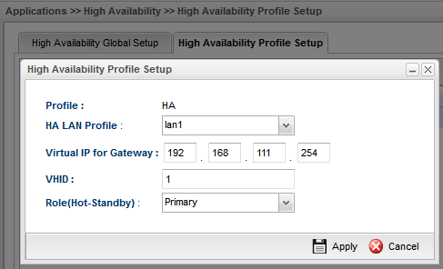 LAN Port Detection Mode: At_Least_One_UpEnable High AvailabilityApply