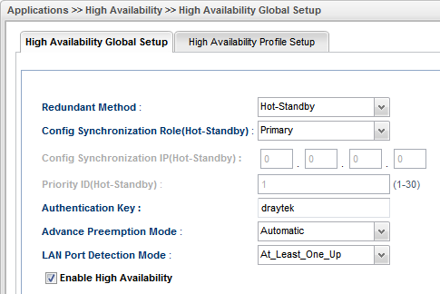 Authentication Key: draytek (đây là mật khẩu chứng thực giữa 2 router chạy HA)