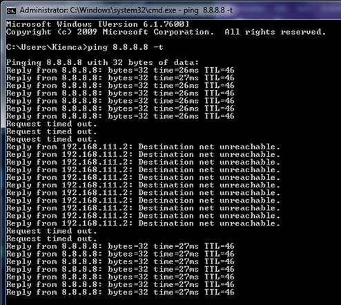 Kiểm traThử kiểm tra bằng cách ping 8.8.8.8 –t, sau đó đột ngột tắt nguồn và đợi xem thiết bị Backup có tự động bật lên kết nối mạng cho hệ thống không