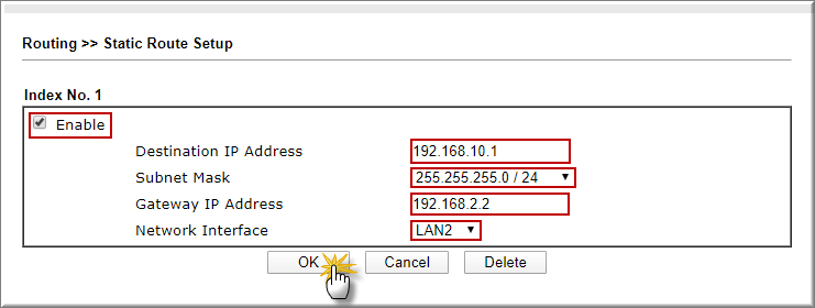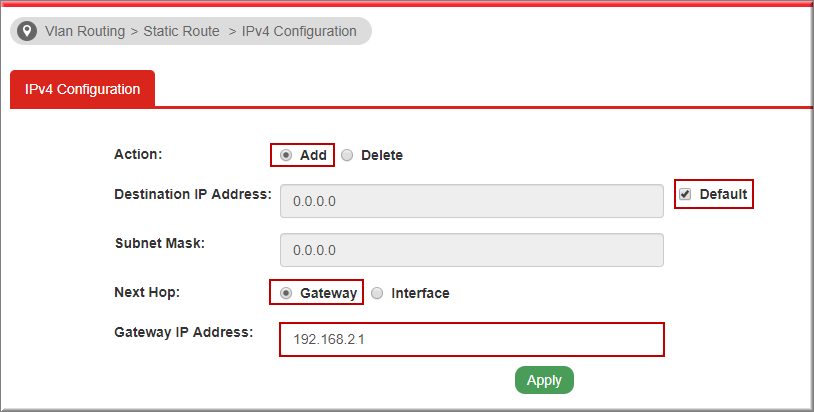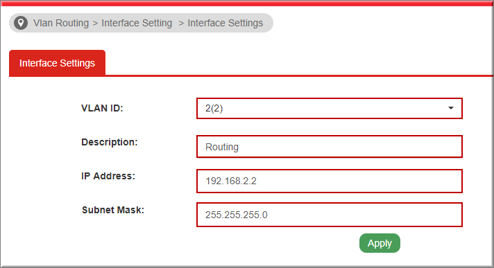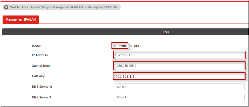 - Gateway IP Addres: Điền IP VigorSwitch (ví dụ 192.168.2.2)