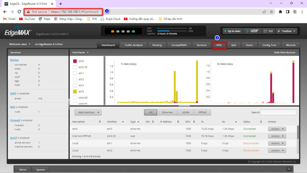 2.Kiểm tra thiết lập kết nối VPN trên Edge Router Unifi