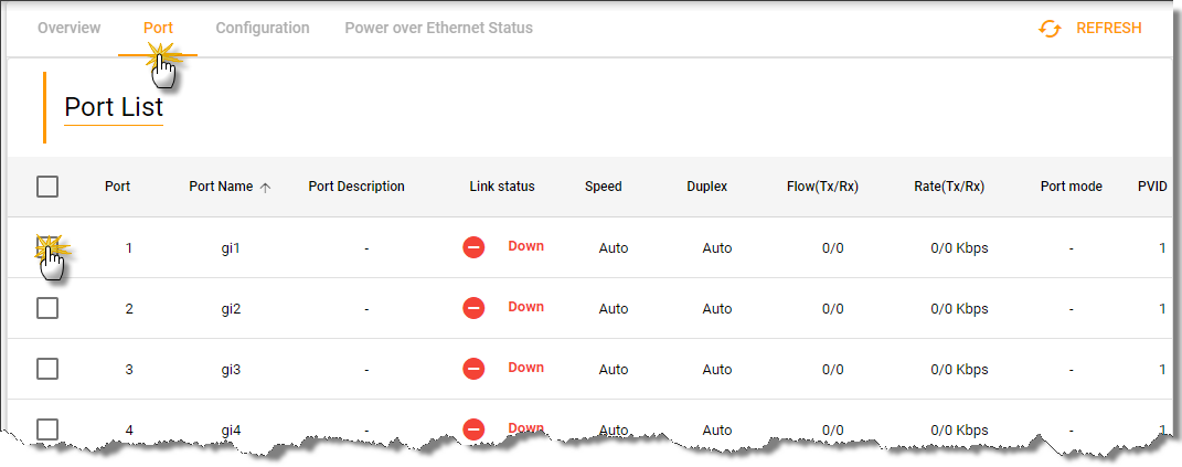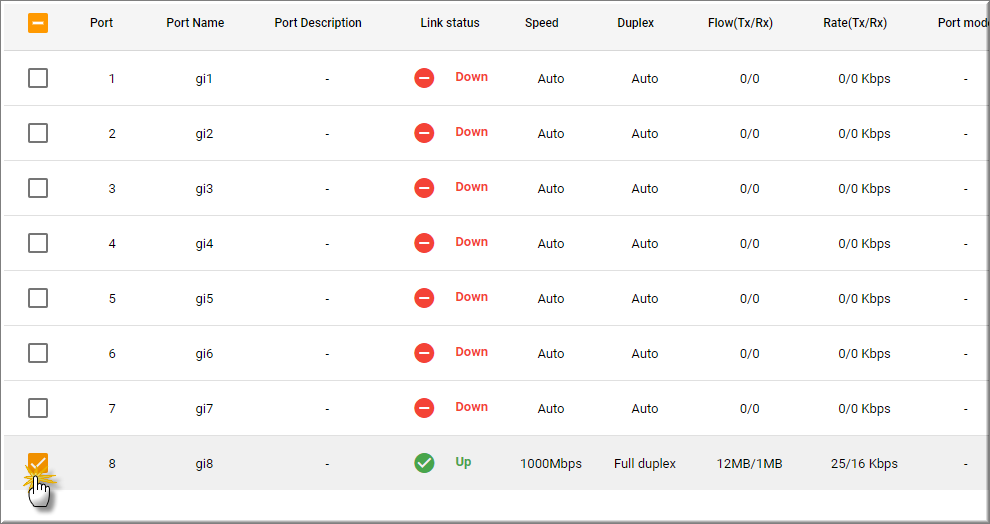 - Chọn Port cần cấu hình (ví dụ port 1)