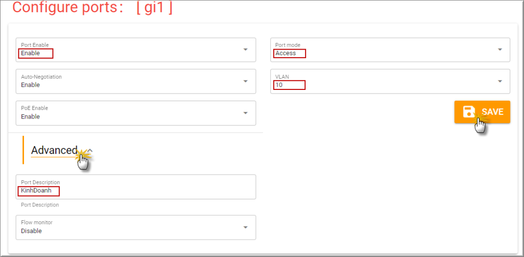 - Port Description: điền ghi chú port (ví dụ KinhDoanh)
