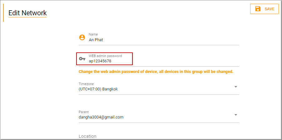 - WEB Admin Password chính là mật khẩu đăng nhập chung của toàn bộ network