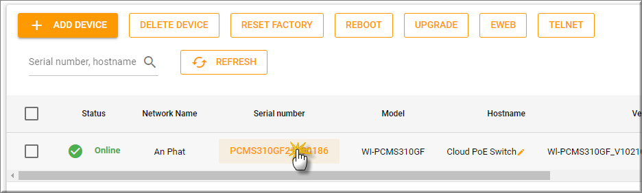 - Nhấn vào Serial Number của Switch cần cấu hình