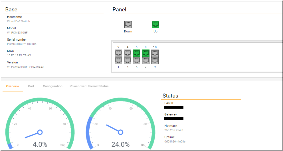 - Xuất hiện thông tin chung của thiết bị như HostName, model,port đang kết nối, IP,…