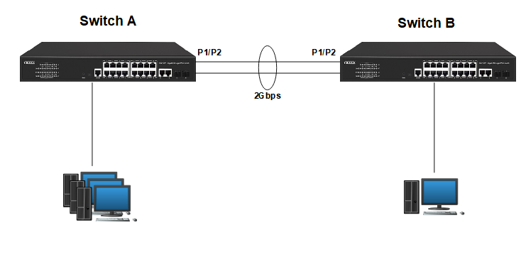 Nhằm tăng băng thông truyền tải giữa các máy tính trong hệ thống mạng nội bộ, bạn có thể sử dụng tính năng Link Aggregation (LACP) giúp kết nối nhiều dây giữa các switch. Tính năng này giúp gộp băng thông 2 hoặc nhiều port giữa các switch, APTEK Switch SG2164P và SG2244P, hổ trợ tối đa 8 group, mỗi group tối đa 8 port.