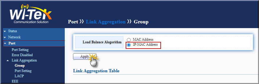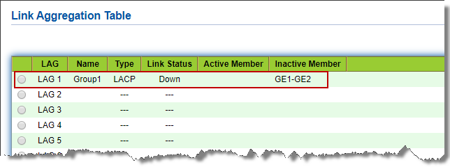 - Sau khi cấu hình xong, ta có bảng Link Aggregation Table như sau:
