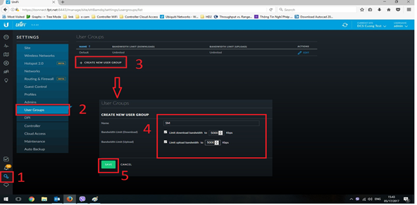 - Vẫn thưc hiện tạo các nhóm băng thông như mục 1 ở trên. Chọn “SETTINGS” / “USER GROUP” / “CREAT NEW USER GROUP” / Nhập các thông tin