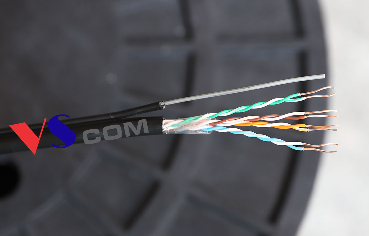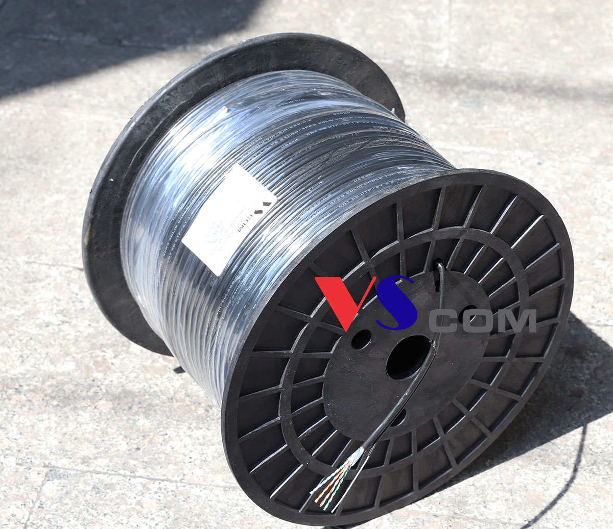 Dây cáp mạng ngoài trời outdoor có sợi cáp chịu lực VSCOM Cat5 PE SS UTP lõi đồng nguyên chất ( cuộn 305M)