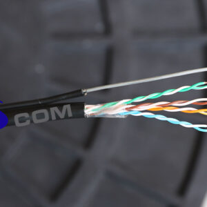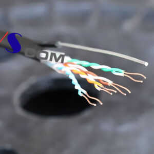 Dây cáp mạng ngoài trời outdoor có sợi cáp chịu lực Cat5e PE SS UTP cứng cáp sử dụng kéo trực tiếp ngoài trời, âm tường, bên trong có lớp vỏ bọc Plastic xung quanh cáp giúp chống ẩm.