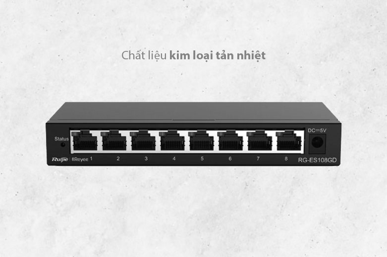 RUIJIE RG-ES108GD được thiết kế với kích thước 144x85x23 mm, từ đó có thể thuận tiện cho việc lắp đặt và di chuyển được thiết bị đến bất kỳ đâu. Bên cạnh đó, thiết bị chuyển mạch với vỏ bằng kim loại giúp tăng khả năng tản nhiệt hiệu quả. Và có thể làm mát trong suốt quá trình làm việc và đảm bảo được độ bền bỉ cho sản phẩm.