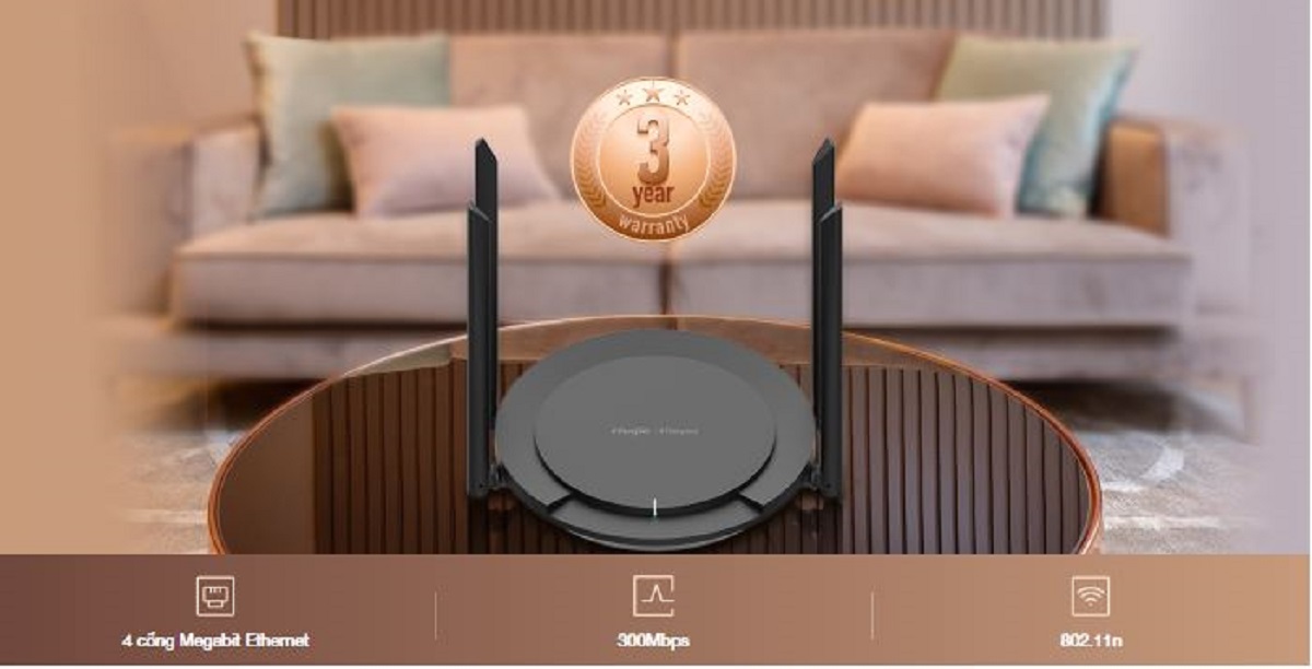 - 1 cổng 10/100M WAN (Auto MDI/MDIX), 3 cổng 10/100 LAN (Auto MDI/MDIX)